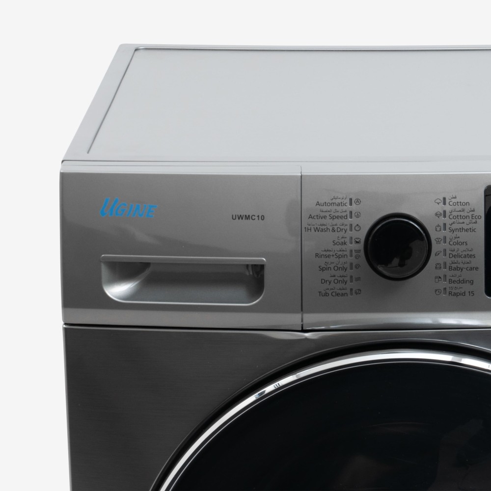 أوجين غسالة أوتوماتيك ,تعبئة امامية ,10 كغ ,تنشيف حراري 100% ,عاكس ,توفير طاقة ,فضي - UWMC10S